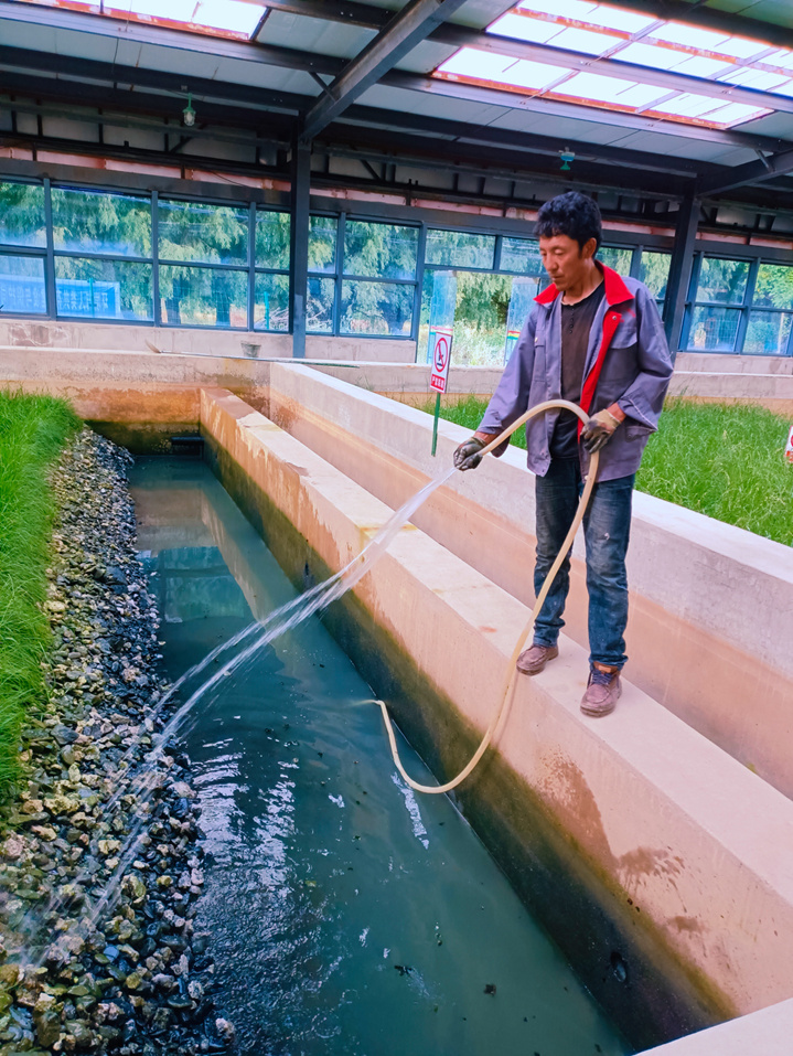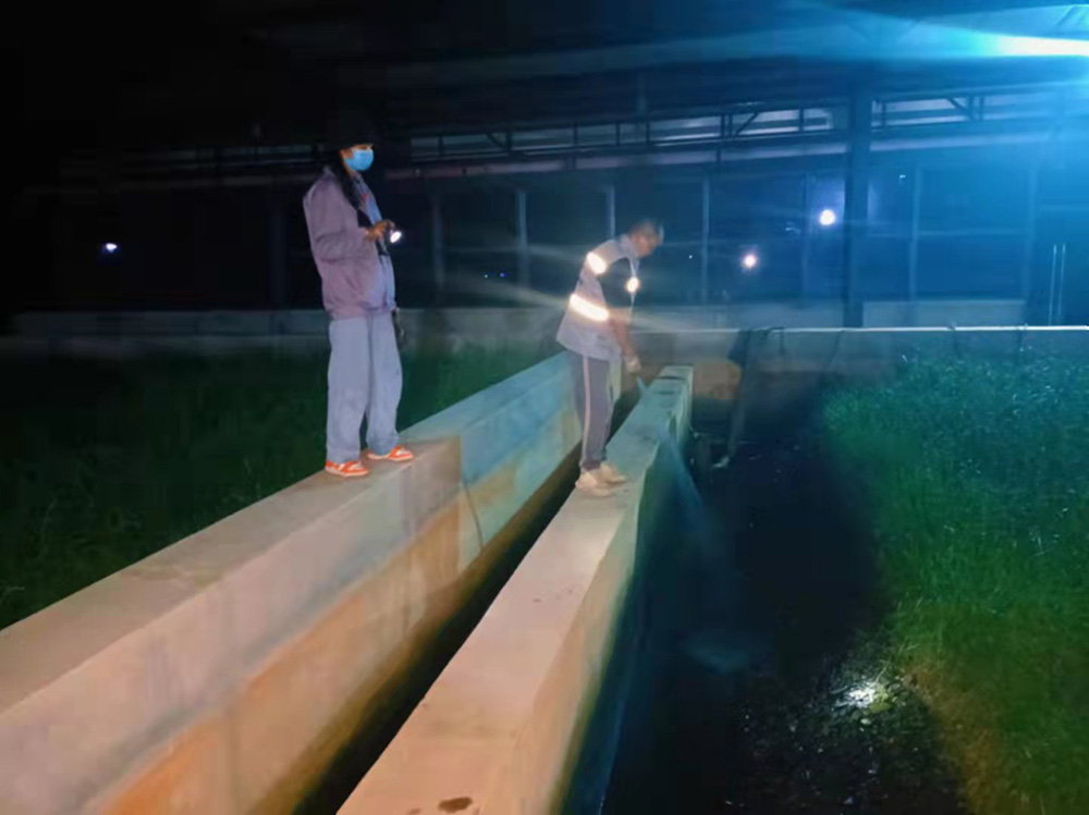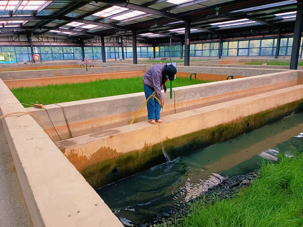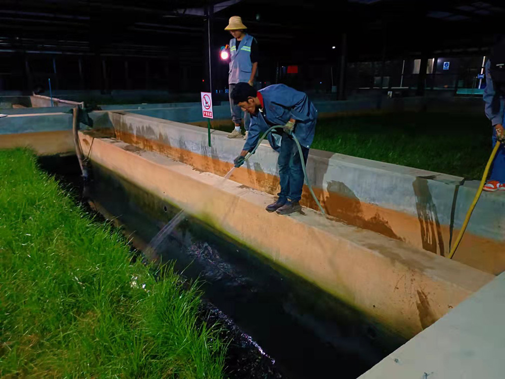 為了使污水處理系統(tǒng)正常運行及出水水質(zhì)達標排放,2021年10月16日,扎囊縣污水處理廠工作人員利用周末時間加班加點清洗室內(nèi)人工濕地池子周邊青苔、紫外消毒燈及巴士計量槽等。如不及時清洗青苔,青苔腐爛后會引起水質(zhì)發(fā)黑、發(fā)臭,氨態(tài)氮含量超標,水體中溶解氧含量偏低;不僅會影響水生動物的色澤,而且會誘發(fā)水腫病等各類疾病。工作人員勤沖刷沖洗,確保水質(zhì)達標排放,白天晚上的加班加點,保質(zhì)保量的完成了工作,為當(dāng)?shù)厝罕娞峁┝烁蓛?、整潔的衛(wèi)生環(huán)境。