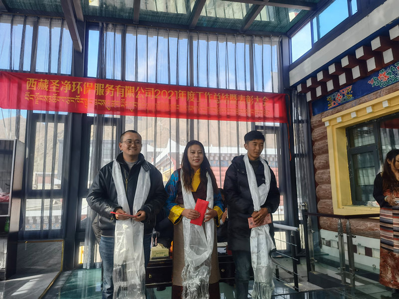 2022年2月25日11:00分,西藏圣凈環(huán)保服務(wù)有限公司在總公司二樓辦公室召開2021年度總結(jié)暨表彰大會。董事長達(dá)瓦、股東拉巴次仁、副總經(jīng)理次仁、副總經(jīng)理尼瑪次仁、綜合辦公室主任旦真多吉及各地分公司負(fù)責(zé)人、各部門負(fù)責(zé)人、優(yōu)秀員工代表和總公司全體員工出席會議。