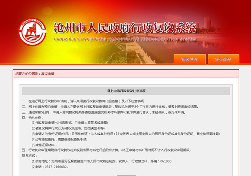 滄州市人民政府行政復(fù)議系統(tǒng)
